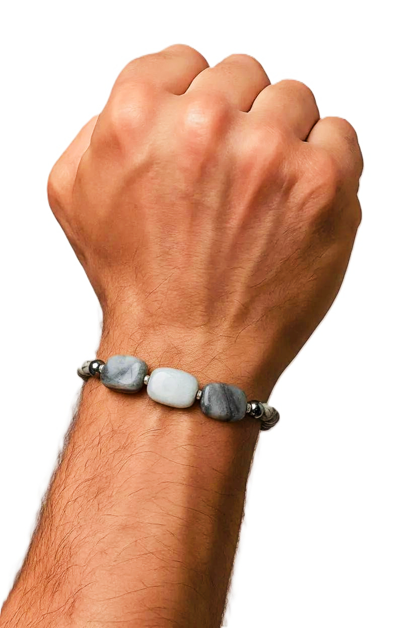 Discover the elegance of the Black/Gray Marble Gemstone Bracelet by heugenewinstonjewelry. This stunning bracelet features genuine black and gray marble gemstones, creating a sleek and sophisticated look. The contrasting colors of the marbled stones give this bracelet a unique and eye-catching appeal. This bracelet is adjustable in length, ranging from 6 inches to 12 inches, ensuring a comfortable fit for any wrist size. Elevate your style with this Black/grey bracelet, perfect for adding a touch of luxury to any outfit. Make a statement with this exquisite piece from heugenewinstonjewelry's Bracelets collection.