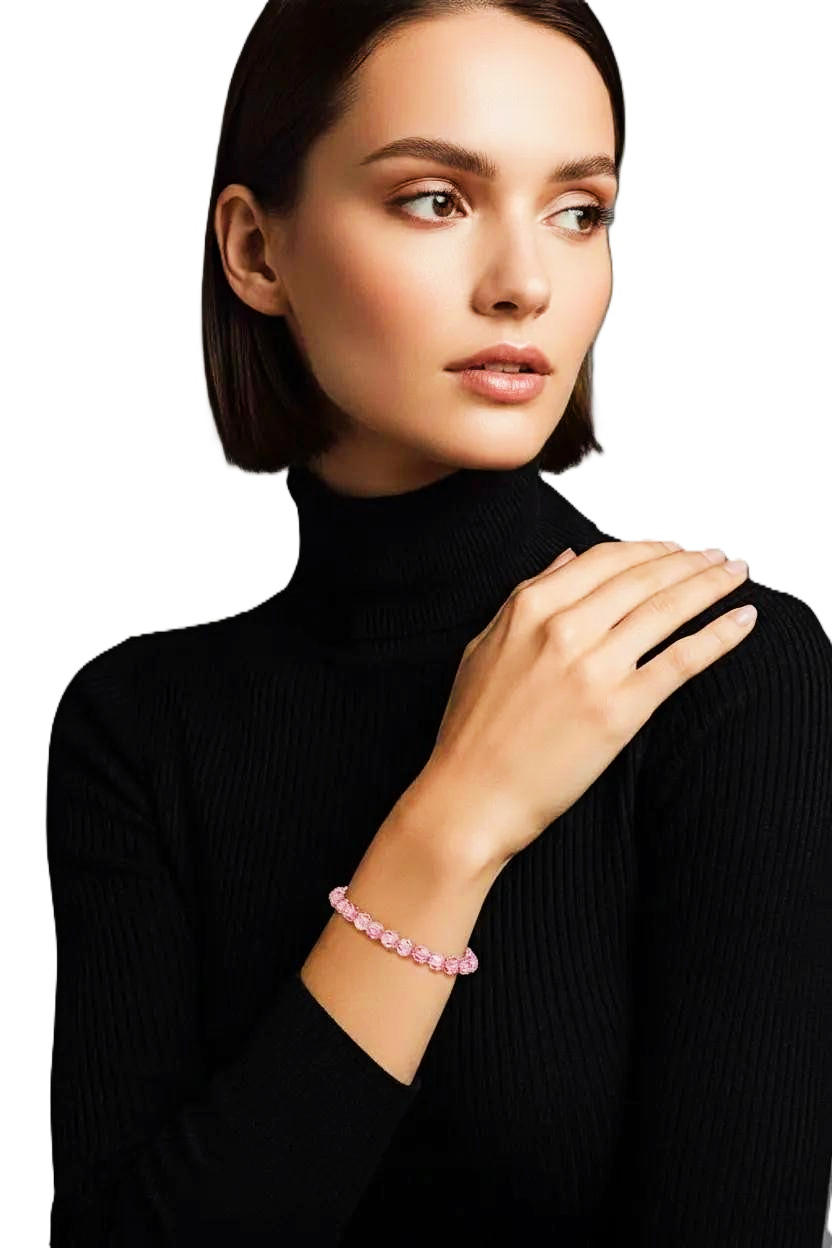 Add a touch of elegance to your outfit with the Women's 6 mm Light Rose Pink Crystal Bracelet from heugenewinstonjewelry. This stunning bracelet features beautiful 6 mm light rose pink crystals that catch the light effortlessly, creating a dazzling effect. The bracelet is perfect for adding a pop of color to your ensemble and is ideal for both casual and formal occasions. The high-quality materials ensure durability and longevity, making it a timeless piece for your jewelry collection. Treat yourself or a loved one to this gorgeous Women's bracelet and elevate your style effortlessly.