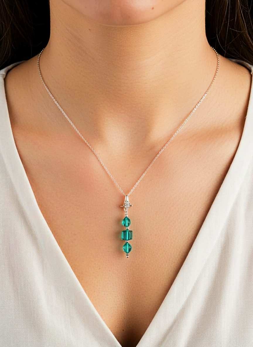 Elevate your style with this stunning Women's Swarovski Emerald Green Pendant Necklace. Crafted with precision and attention to detail, this exquisite necklace features a sparkling emerald green Swarovski crystal set in a delicate pendant. The vibrant green color of the crystal adds a touch of elegance and sophistication to any outfit. The pendant hangs from a dainty chain that secures with a lobster clasp for easy wear. Perfect for adding a pop of color to your everyday look or for special occasions, this Women's Emerald Green Pendant Necklace is a timeless piece that will elevate your style effortlessly.