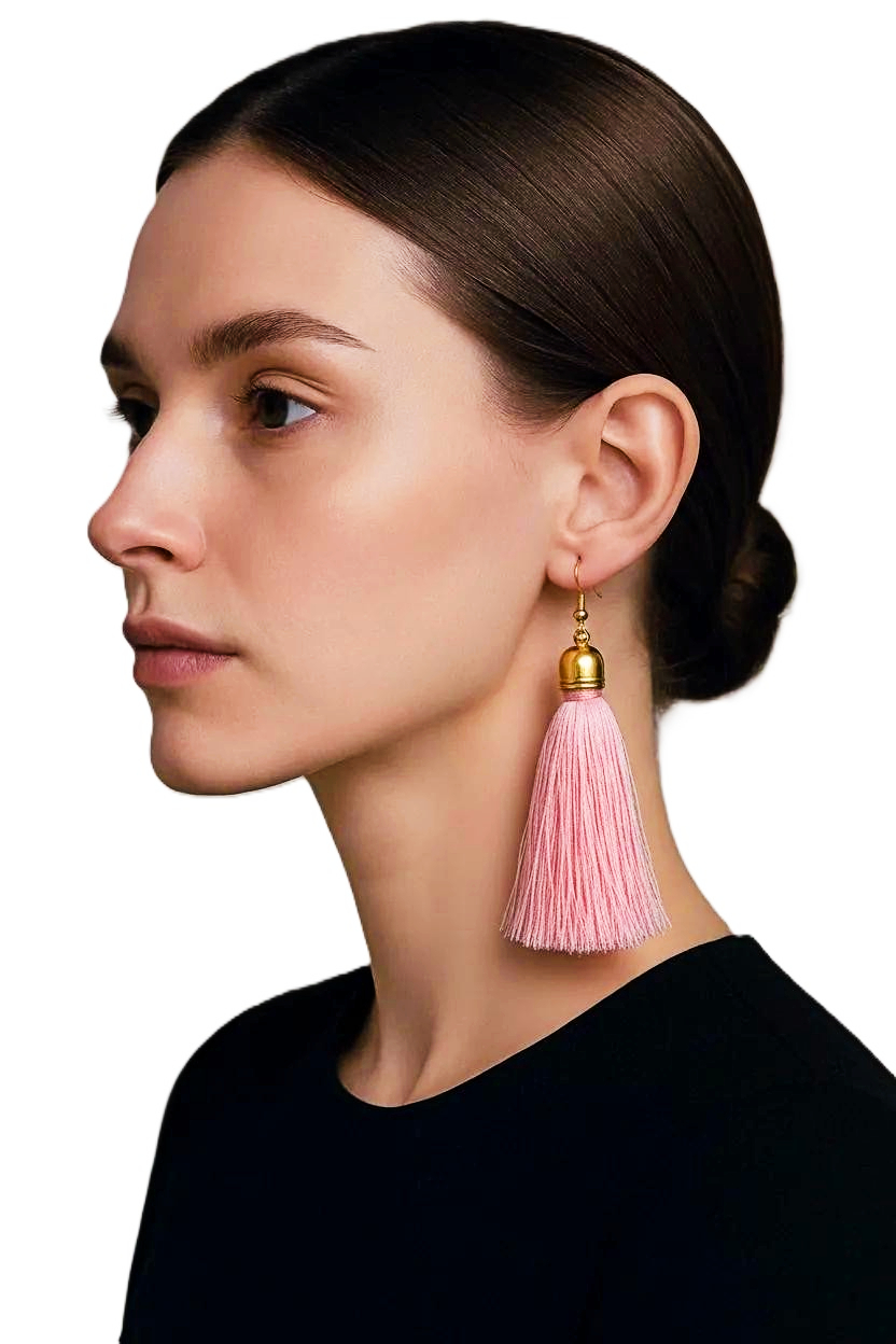 Elevate your style with these exquisite Women's Light Pink Silk Tassel Earrings from heugenewinstonjewelry. Crafted with luxurious silk tassels in a soft pink hue, these earrings add a touch of sophistication to any outfit. The lightweight design ensures comfortable wear all day long. Perfect for both casual and formal occasions, these statement earrings are an essential addition to your jewelry collection. Stand out with these chic Women's Tassel Earrings that exude elegance and glamour. Make a statement with these stunning earrings from heugenewinstonjewelry that are sure to turn heads wherever you go.