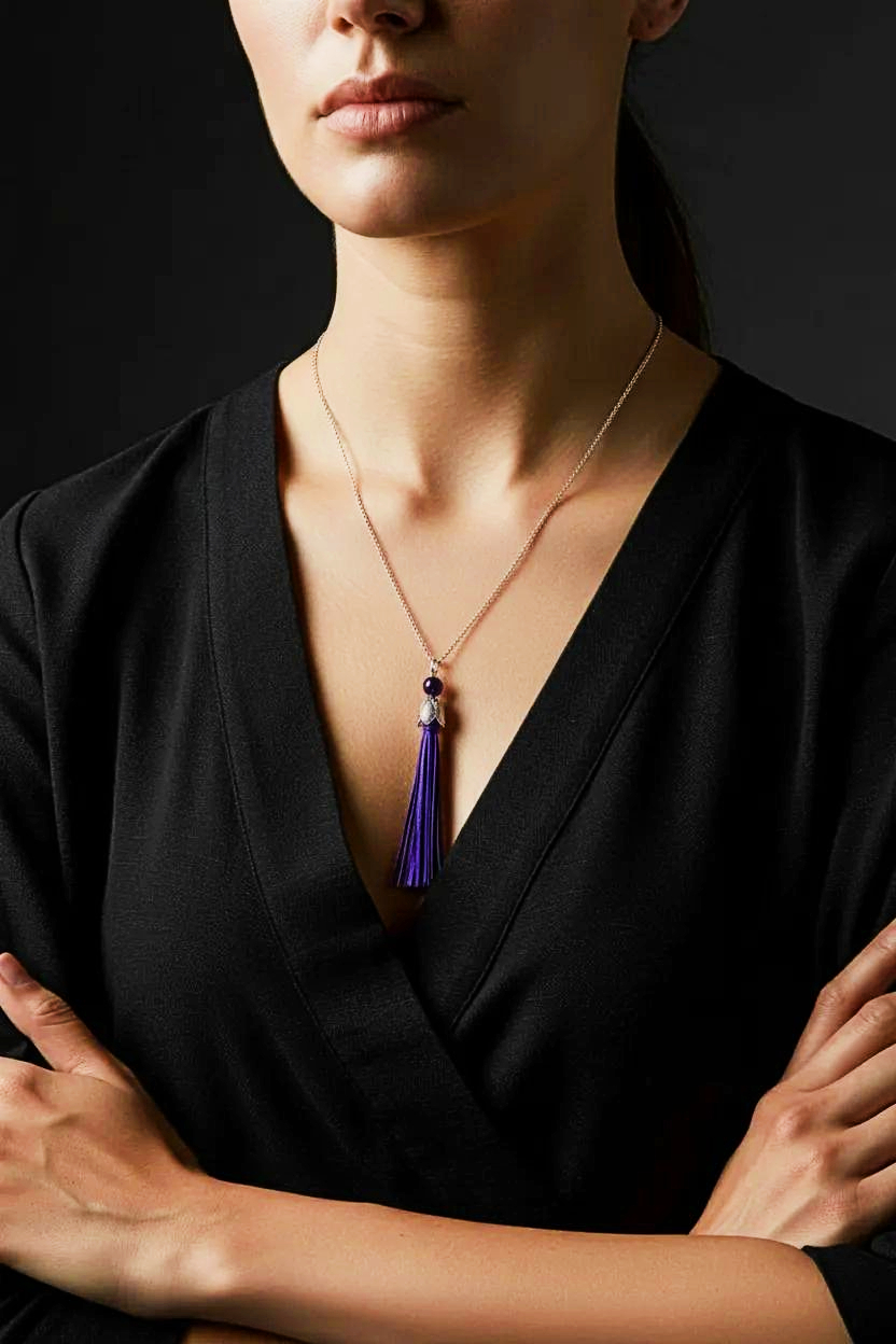 Elevate your style with the Women's Light Purple Suede Tassel Necklace from heugenewinstonjewelry. This stunning statement piece features a soft purple suede cord adorned with a trendy tassel detail, adding a touch of bohemian chic to any outfit. The adjustable length ensures a perfect fit for everyone, while the high-quality materials guarantee durability. This versatile necklace is perfect for everyday wear or special occasions, making it a must-have accessory for any fashion-forward woman. Embrace your unique sense of style with the Women's Light Purple Suede Tassel Necklace, the perfect addition to your jewelry collection.