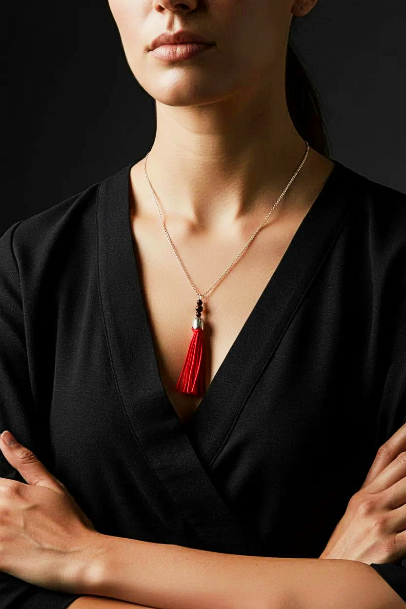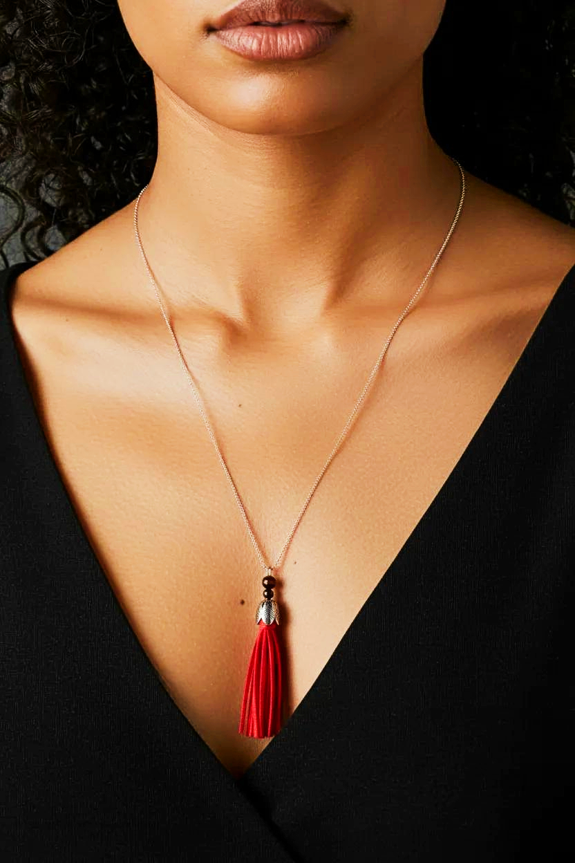 Elevate your look with this stunning Women's Red Suede Tassel Necklace from heugenewinstonjewelry. Crafted with high-quality red suede material, this necklace features a trendy tassel design that adds a touch of sophistication to any outfit. The adjustable length makes it versatile for various necklines, while the gold-tone hardware adds a luxurious touch. Perfect for accessorizing casual or dressy ensembles, this piece is a must-have in any jewelry collection. Whether you're dressing up for a night out or adding a pop of color to your everyday look, this Women's suede jewelry necklace is sure to make a statement.