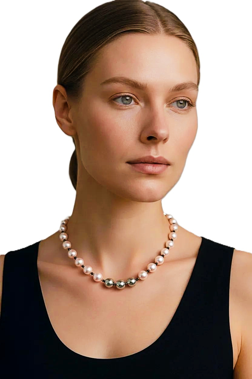Add a touch of elegance to your outfits with this stunning Women's Rosalind Pink & Light Gray Crystal Pearl Necklace. This exquisite necklace features a beautiful combination of pink and light gray crystal pearls, creating a sophisticated and feminine look. The pearls are carefully strung together to form a luxurious and eye-catching accessory that is perfect for any occasion. The necklace is crafted with high-quality materials and is designed to be comfortable to wear. Elevate your style with this chic Crystal Pearl Necklace and make a statement wherever you go. Ideal for adding a touch of glamour to your ensemble.