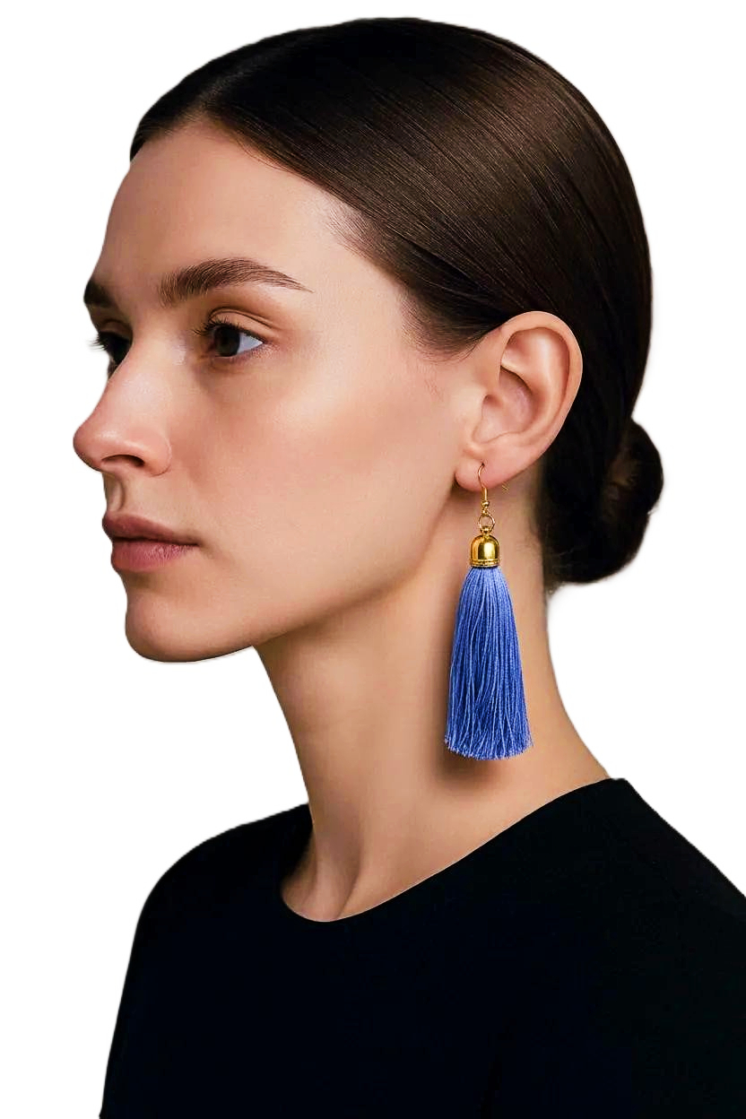 Enhance your elegance with these exquisite Women's Tanzanite Silk Tassel Dangle Earrings by heugenewinstonjewelry. Crafted with stunning Tanzanite gemstones and luxurious silk tassels, these earrings are perfect for adding a touch of sophistication to any outfit. The vibrant blue hue of the Tanzanite stones complements the delicate silk tassels beautifully, creating a glamorous and eye-catching accessory. Ideal for both casual and formal occasions, these statement earrings are sure to make a statement. Elevate your look with these chic Silk Tassel Earrings and make a stylish statement wherever you go.