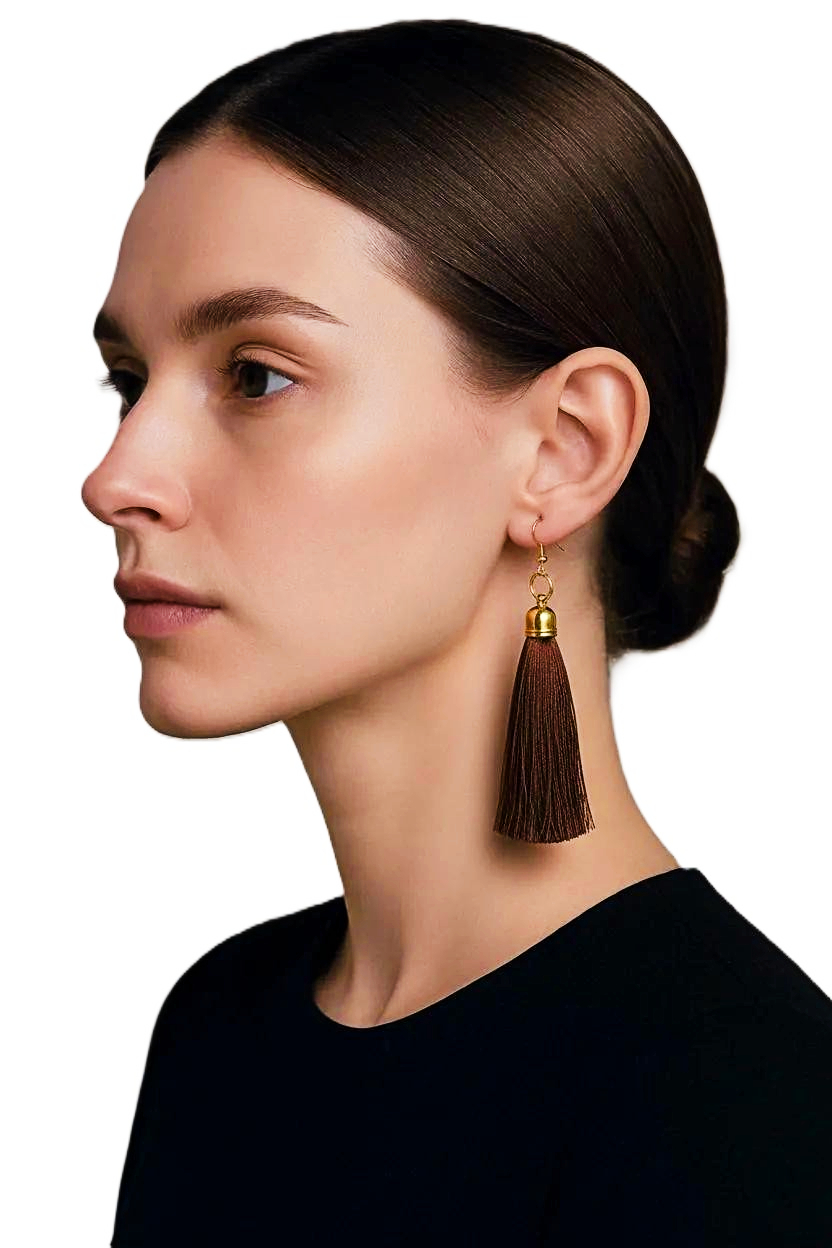 Enhance your look with these exquisite Women's Brown Silk Tassel Earrings by heugenewinstonjewelry. These elegant earrings are the perfect accessory to elevate any outfit, crafted from high-quality silk material in a rich brown hue. The tassel design adds a touch of sophistication and glamour to your ensemble, making them ideal for both casual and formal occasions. These statement earrings are lightweight and comfortable to wear, ensuring you can flaunt them all day or night long. Add a touch of class to your jewelry collection with these stunning Brown Silk Earrings from heugenewinstonjewelry.