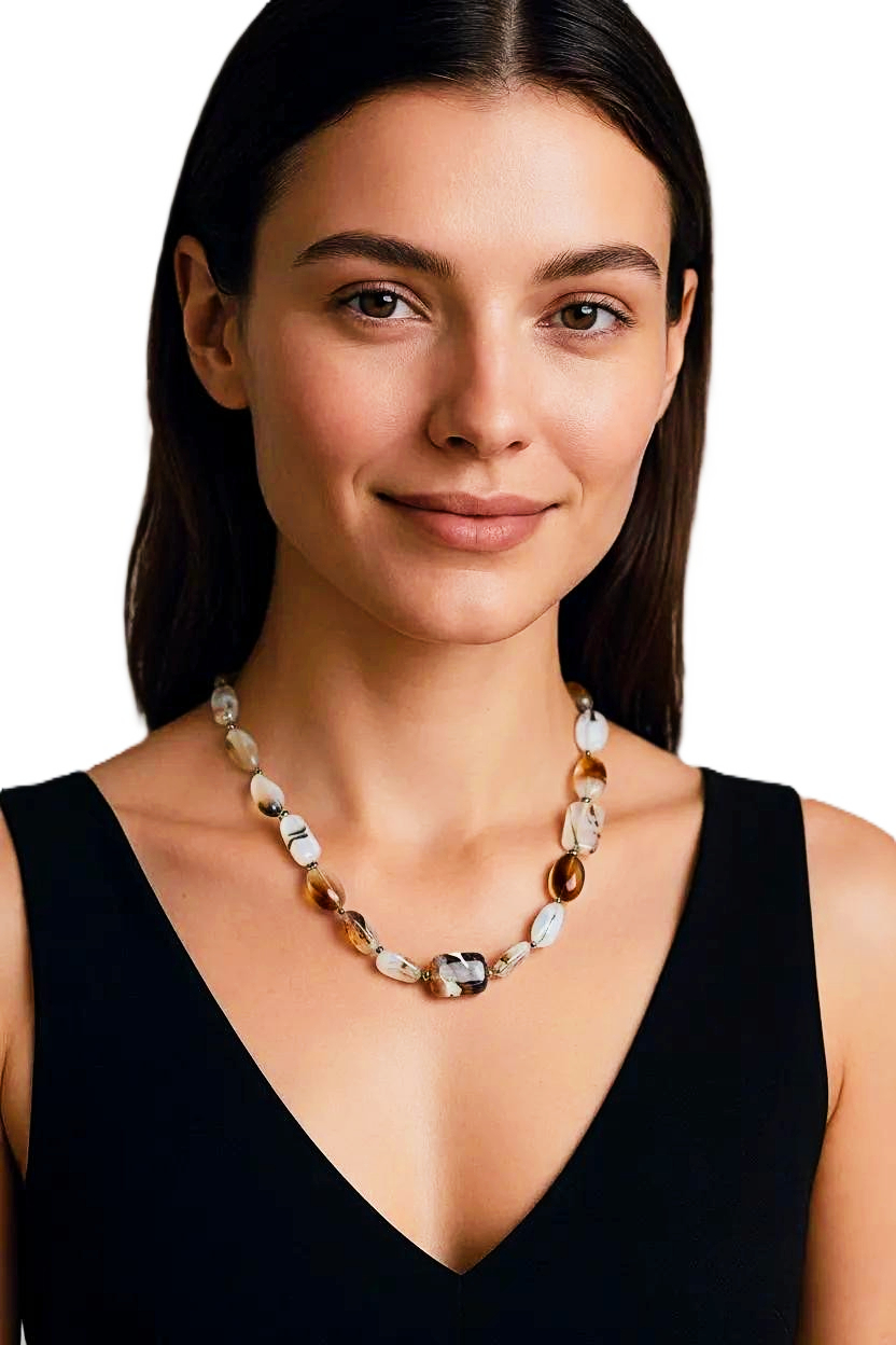 Elevate your jewelry collection with this exquisite Women's Moss Agate Necklace. Handcrafted with beautiful moss agate stones, this necklace exudes elegance and sophistication. The natural green hues of the stones create a calming and earthy aesthetic, perfect for adding a touch of nature-inspired beauty to any outfit. The delicate sterling silver chain complements the stones perfectly, making this necklace a versatile accessory for any occasion. Whether you're dressing up for a special event or adding a chic touch to your everyday look, this Women's Moss Agate Necklace is sure to make a statement.